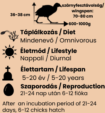 The Eurasian coot is a stocky bird with black plumage, characterized by a distinctive white frontal shield and bill. An increasing number of individuals now overwinter on ice-free bodies of water. In Hungary, it is a frequent breeder.