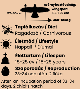 Diet: the Honey-buzzard is a dietary specialist. It primarily feeds on the larvae and pupae of wild bees and wasps, though it also consumes adult individuals. It is protected from stings by specialized scale-like feathers on its head. If necessary, it also eats grasshoppers and lizards.