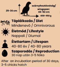 Diet: omnivorous, fruit, nuts, and seeds, including oil palm fruit.