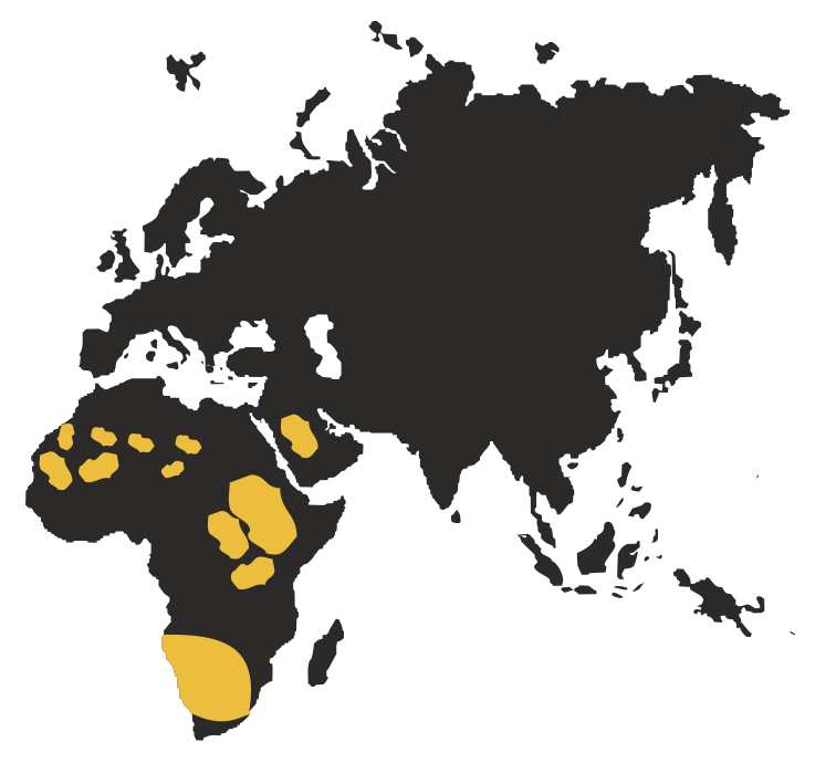 Dry savannah, thornbush, arid plains, open mountain slopes.