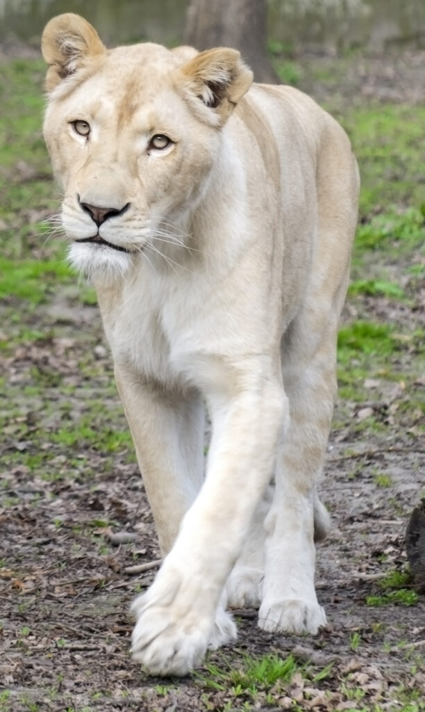 Bár fehér oroszlánnak is nevezik, valójában nem albínó és nem külön faj, hanem az oroszlán egyik alfajánál, a dél-afrikai oroszlánoknál előforduló világos színváltozat, amelyet egy mutáns gén okoz.