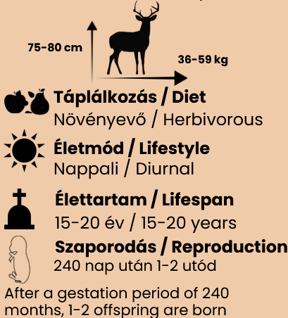 Ez a szarvasfaj a kisebb termetű szarvasok közé tartozik, marmagassága 75-80 cm. Fülük, farkuk kicsi. A nőstények sokkal kisebbek, mint a hímek.