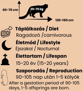 Fakó színű, foltos, vastag bundája jól elrejti a havas sziklák között, és védi a nagy hidegekben is. Téli szőrzete nemcsak hosszú, hanem kétrétegű is. A felső réteg alatt, a testhez közelebb egy gyapjúszerű alsóbunda van. Kedvelt táplálékai a hegyi kecskék és a hegyi juhok. A szaporodási időszakban a pár együtt vadászik: egyikük a zsákmányt egy völgy felé hajtja, míg a másik lesben áll, majd rárohannak az áldozatra. A tél beköszöntével követik prédáikat, és lejjebb húzódnak a sűrű erdőkbe, rododendron-bozótosokba. Itt fácánokra, szarvasokra és vaddisznókra is vadásznak.
