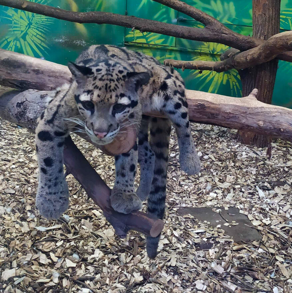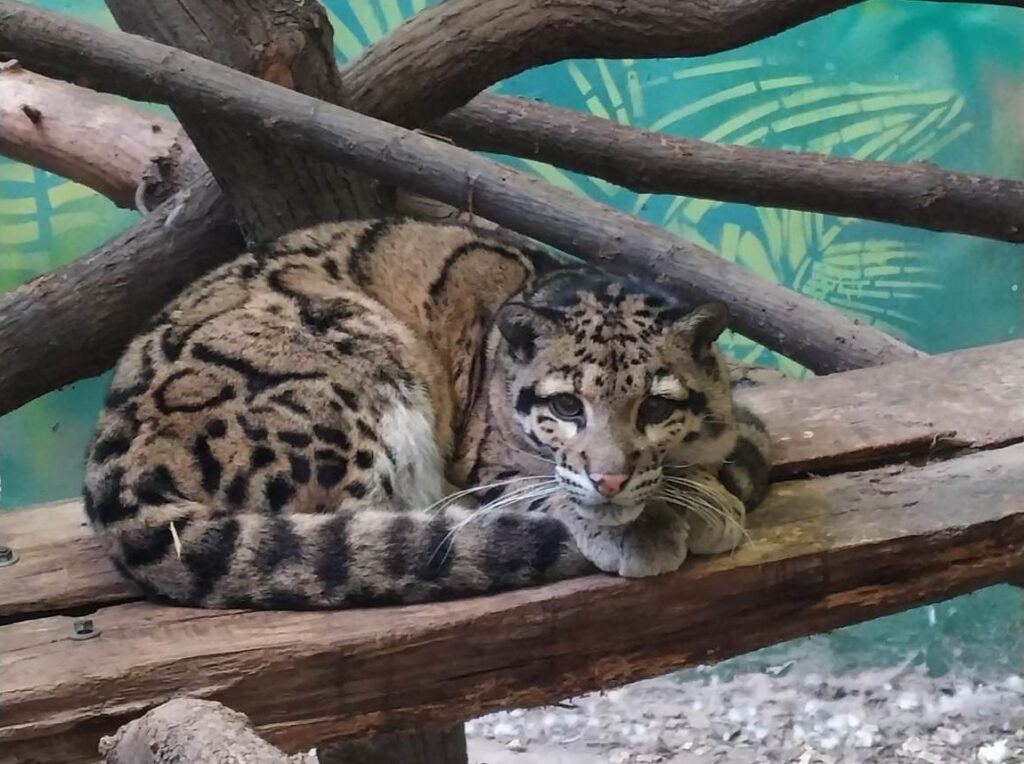 Adulții au pete caracteristice în formă de nori, în timp ce puii au pete închise, compacte. Specia este amenințată de pierderea habitatului din cauza defrișărilor și de braconaj.