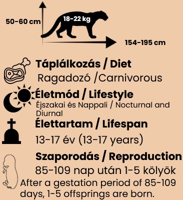 La fel ca alte feline, poate mârâi, mieuna, șuiera sau pufni, însă nu toarce aproape niciodată. În schimb, își exprimă starea de bine sau prietenia față de un alt individ prin mici fornăituri. Picioarele posterioare sunt mai lungi decât cele anterioare, ceea ce îl ajută să se deplaseze cu ușurință prin copaci. Principala sa pradă este formată din mamifere arboricole. Este un cățărător excelent, iar coada lungă îl ajută să își mențină echilibrul pe ramuri.