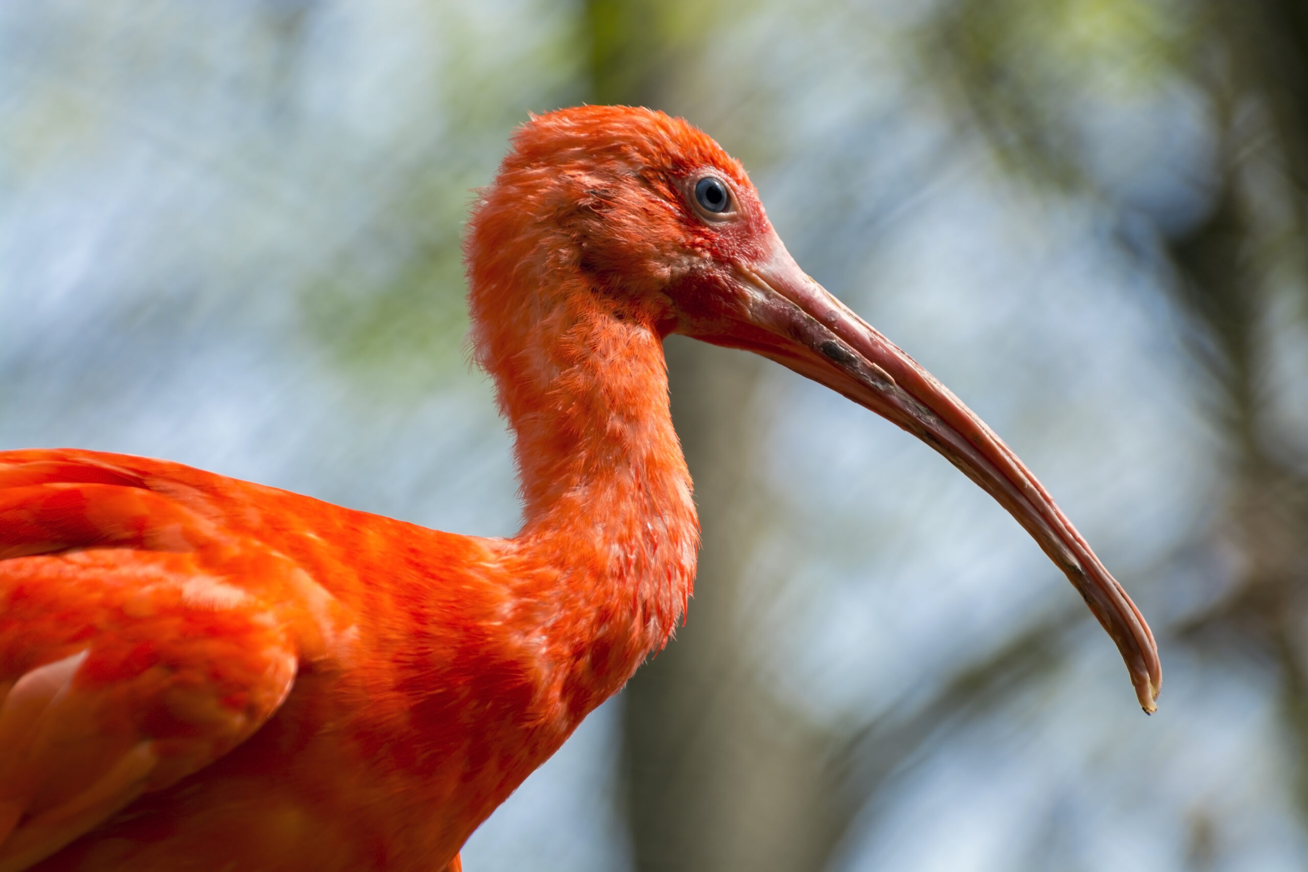 Colorit și dietă: Culoarea izbitoare a ibisului roșu este cauzată de carotenoizii obținuți din sursa lor principală de hrană, crustaceele. Exemplarele tinere au pene de culoare maro. Pe lângă crustacee, dieta lor constă în moluște, pești mici și viermi, pe care îi găsesc sondând mâlul. Ciocul lor este curbat în jos. Adesea se hrănesc alături de alte păsări acvatice; această grupare mixtă îi ajută să se ascundă mai eficient de prădători, iar mișcarea multor păsări agită apa puțin adâncă, facilitând deranjarea și prinderea prăzii.