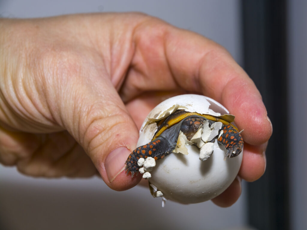 Razmnožavanje: Ženka kopa jamu za gneždenje „obličja boce“, duboku oko 20 cm, u koju polaže jaja. Nakon što pokrije gnezdo, ona više ne pruža nikakvu roditeljsku brigu, što je tipično ponašanje za većinu vrsta kornjača.