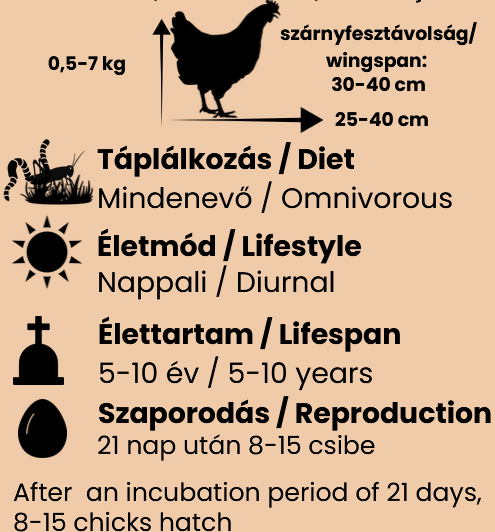 Upotreba i karakteristike: Domaća kokoš je jedna od najrasprostranjenijih i najčešće gajenih domaćih životinja na svetu. Koka je sposobna da snese između 240 i 280 jaja godišnje. Njeno meso je osnovna životna namirnica širom sveta, a koristi se i njeno perje. Krila su joj mala u odnosu na veličinu tela, što joj omogućava da leti samo na kraćim relacijama.